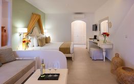 Specjalnym punktem są urokliwe apartamenty w bungalowach inspirowanych kretą z oddzielnym salonem i sypialnią oraz widokiem na zieleń lub bezpośrednio na morze. A ci, którzy pragną jeszcze więcej ekskluzywności, mogą cieszyć się luksusem apartamentu z prywatnym basenem lub wybrać jedną z eleganckich willi z kilkoma sypialniami, dla maksymalnej prywatności i relaksujących chwil wakacyjnych z całą rodziną lub we dwoje.